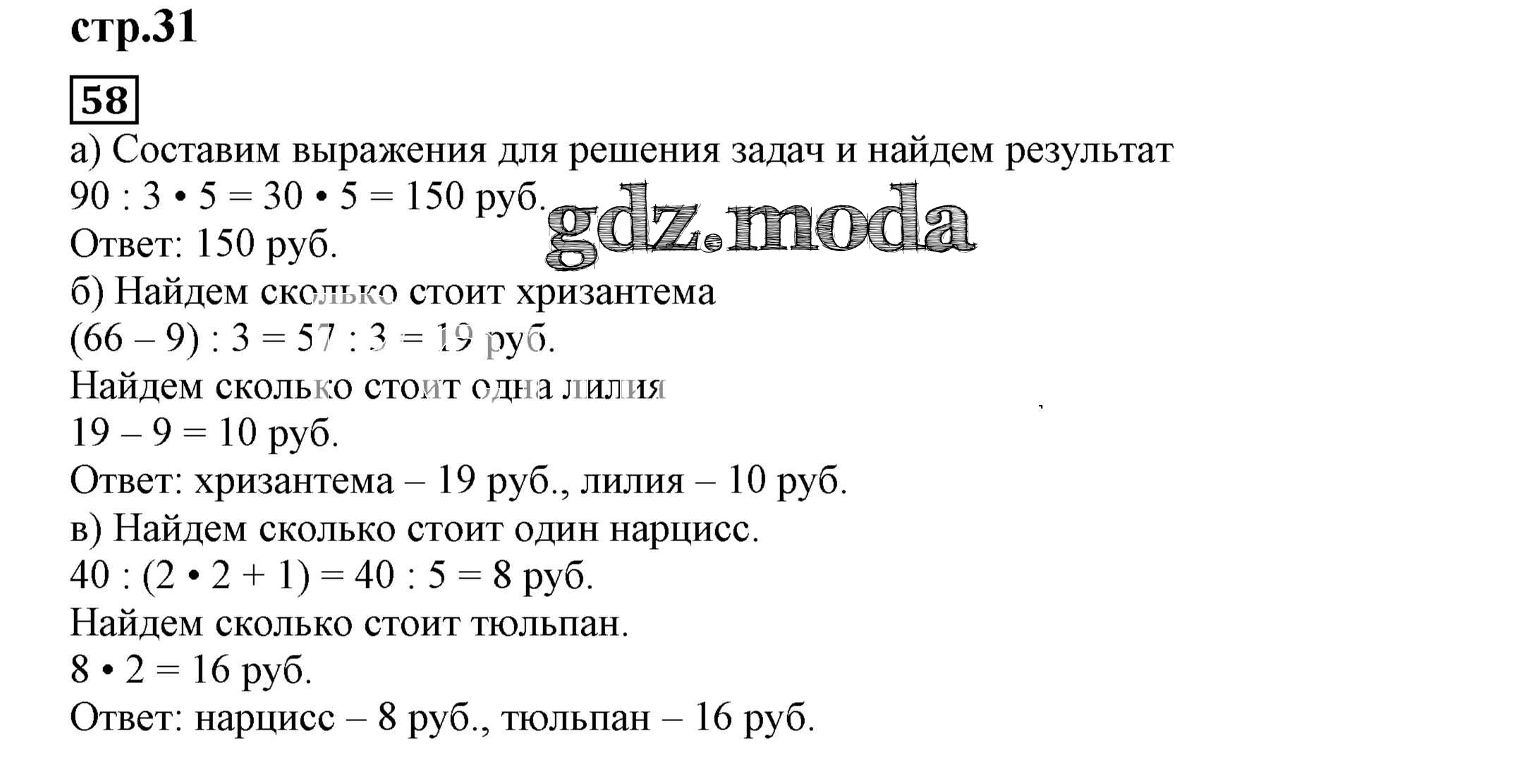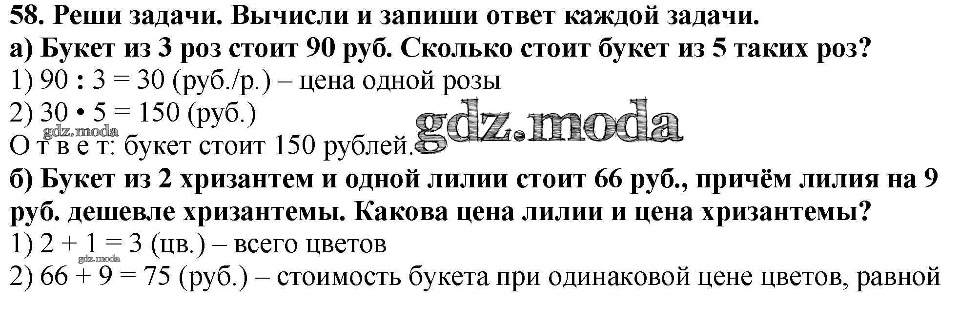 ОТВЕТ на задание № 58 Тетрадь для самостоятельной работы по Математике 4 класс Захарова