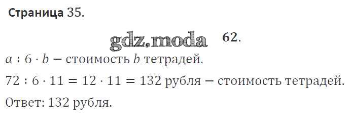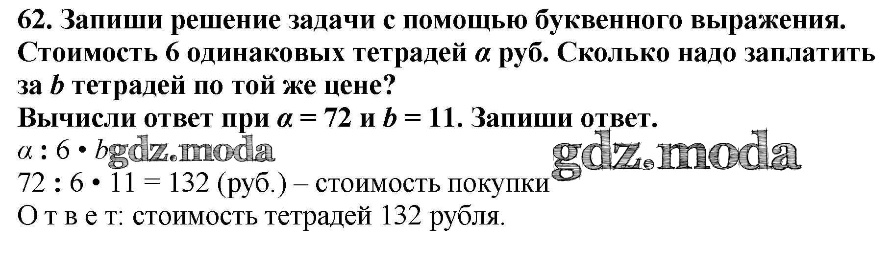 ОТВЕТ на задание № 62 Тетрадь для самостоятельной работы по Математике 4 класс Захарова