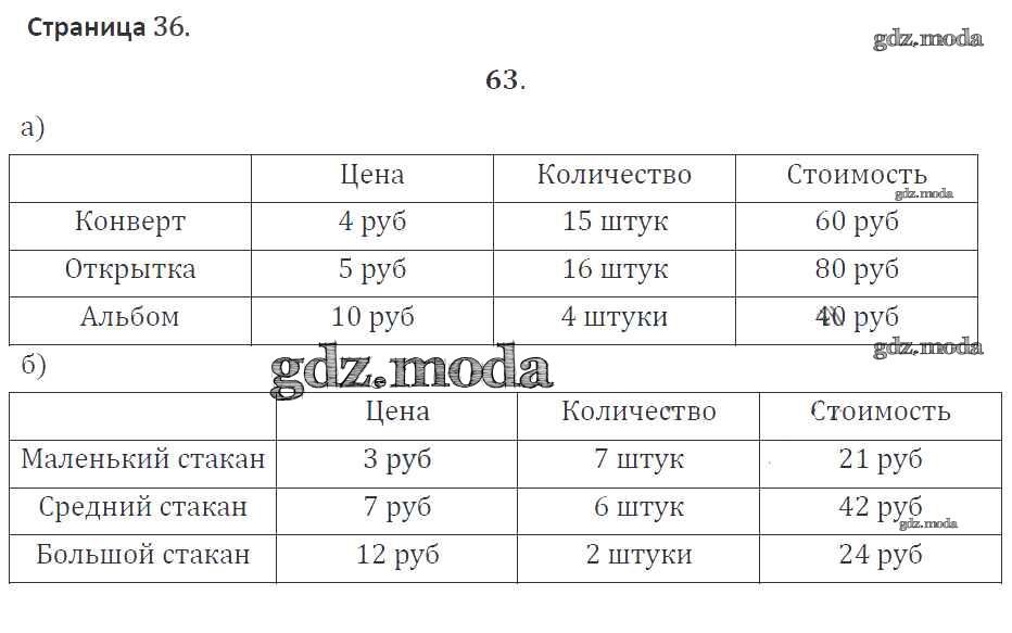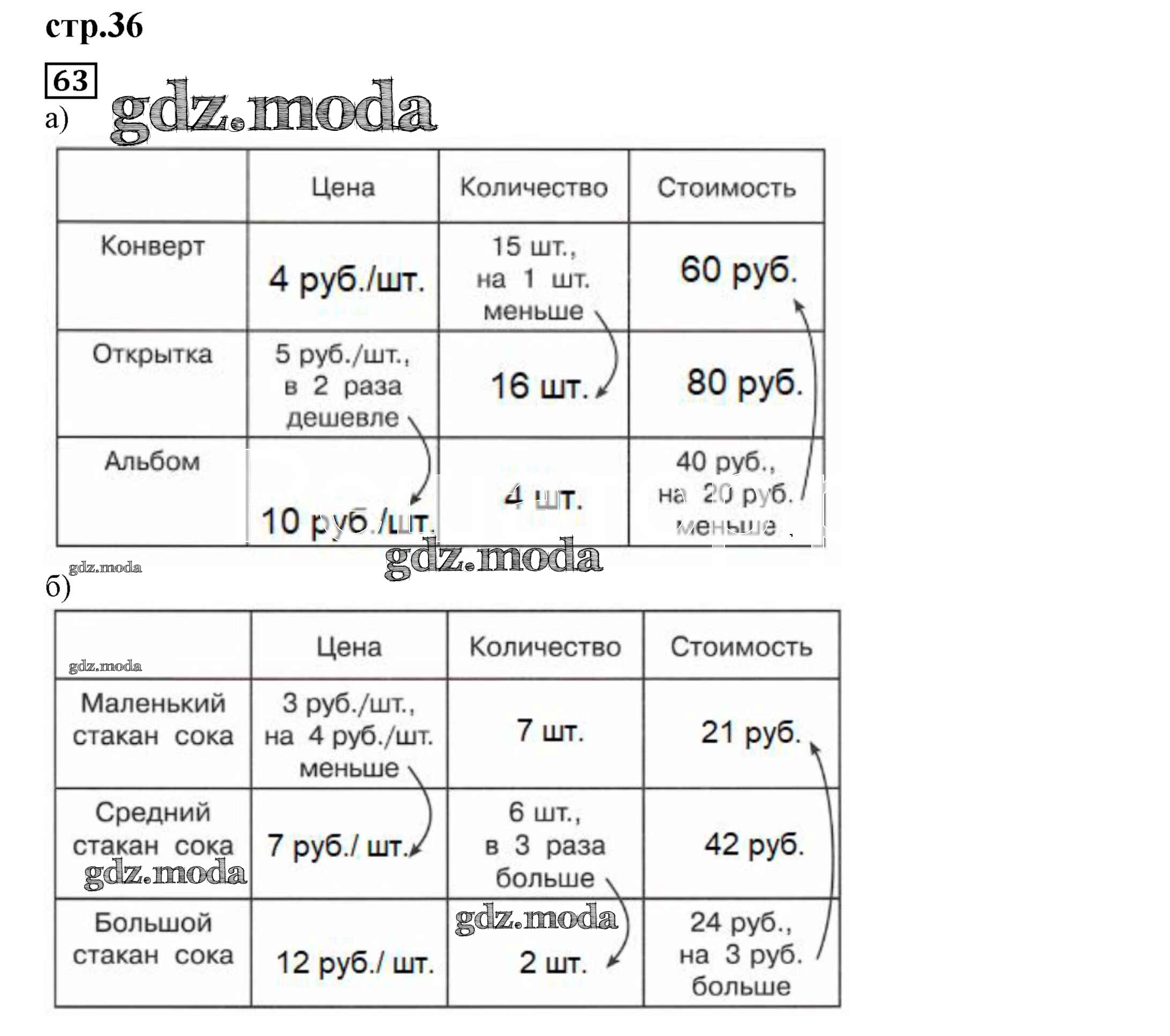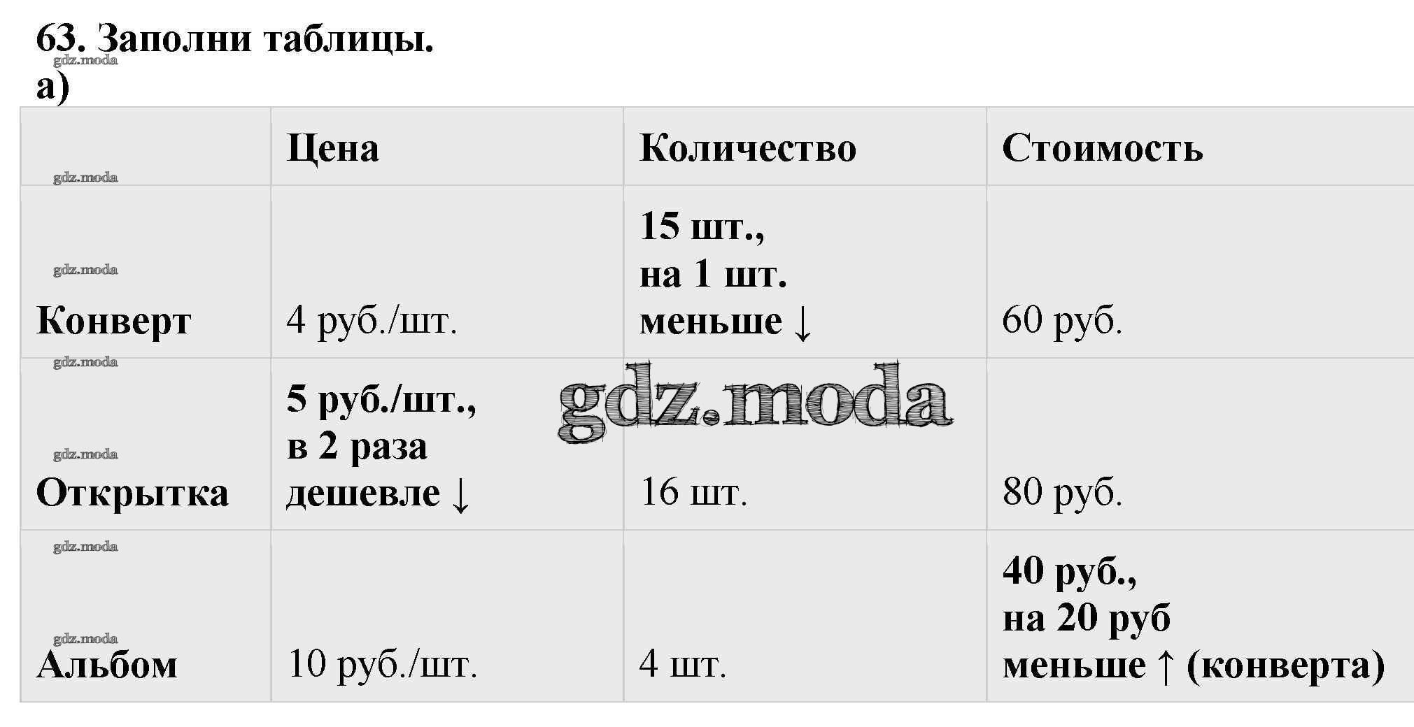 ОТВЕТ на задание № 63 Тетрадь для самостоятельной работы по Математике 4 класс Захарова