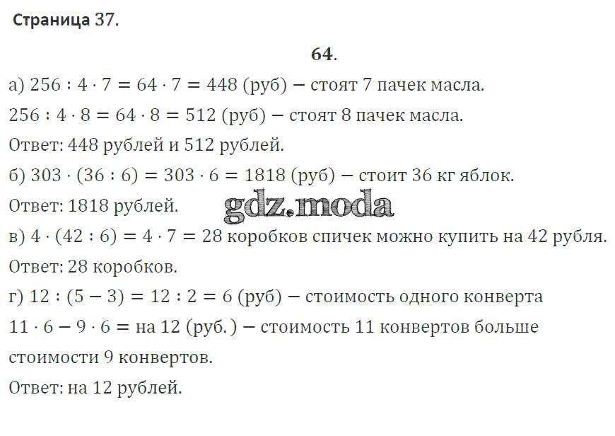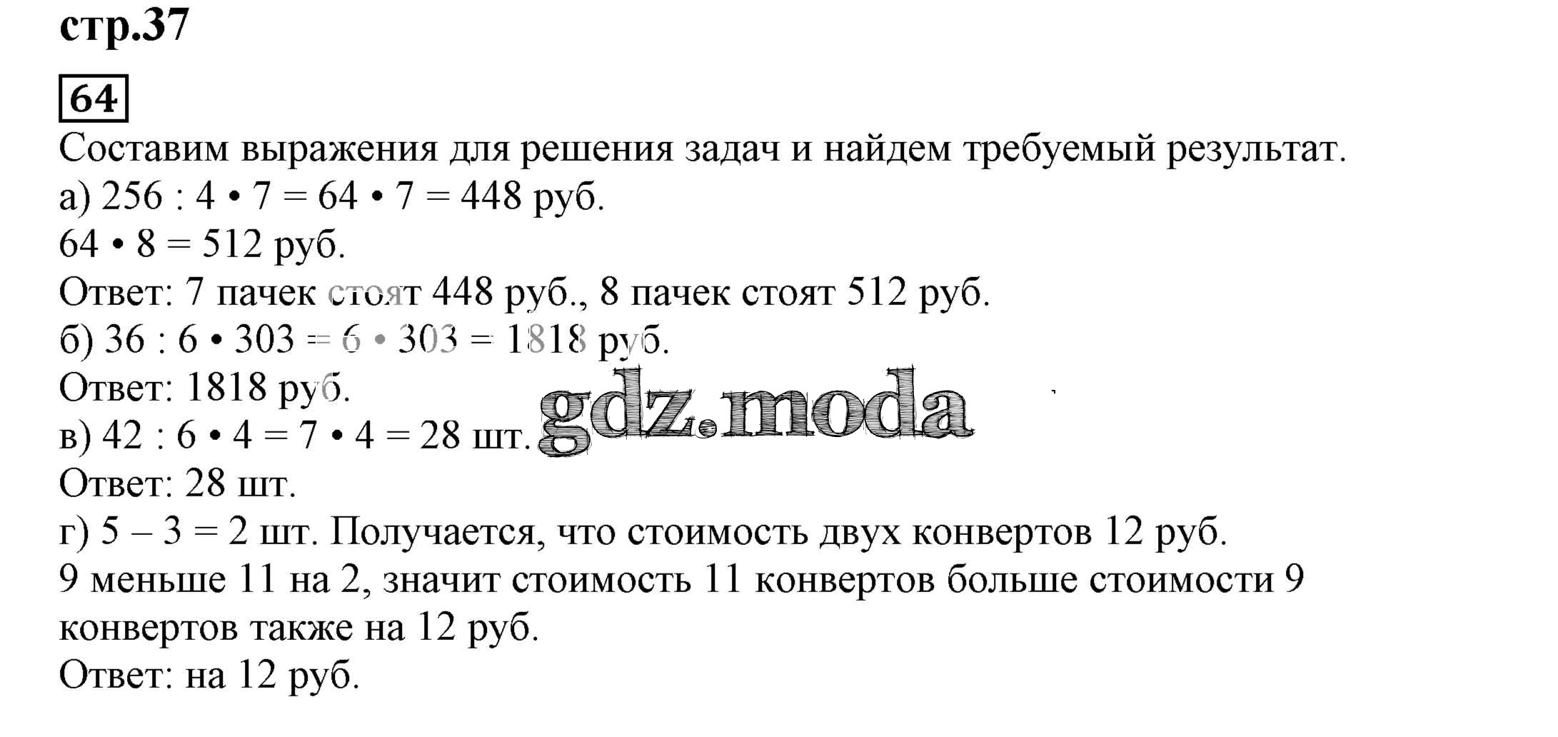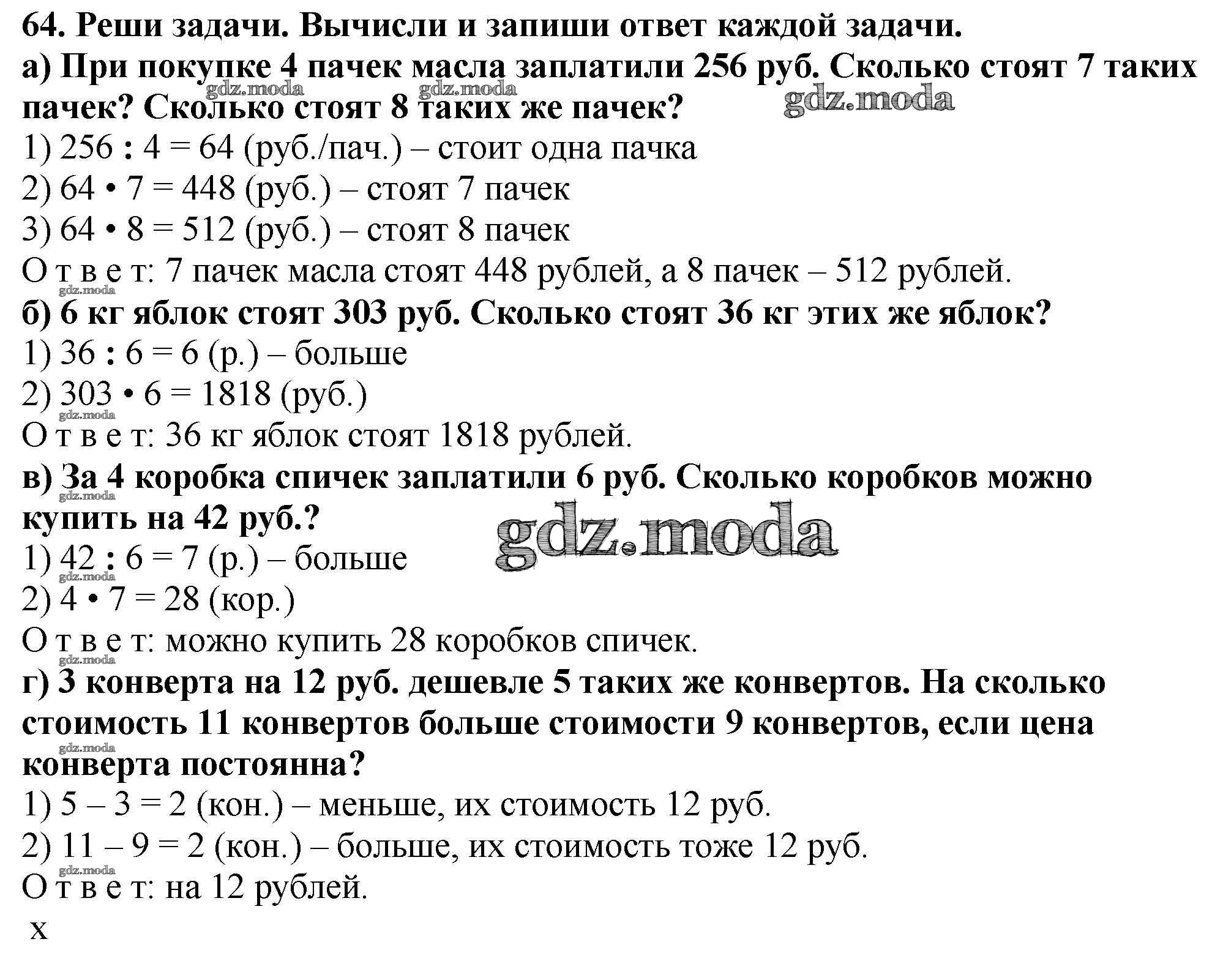 ОТВЕТ на задание № 64 Тетрадь для самостоятельной работы по Математике 4 класс Захарова