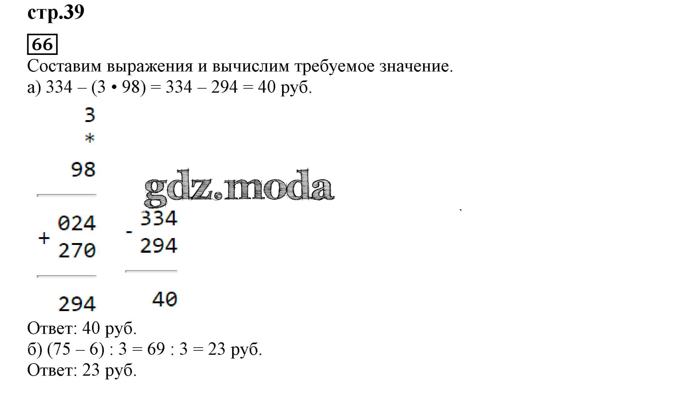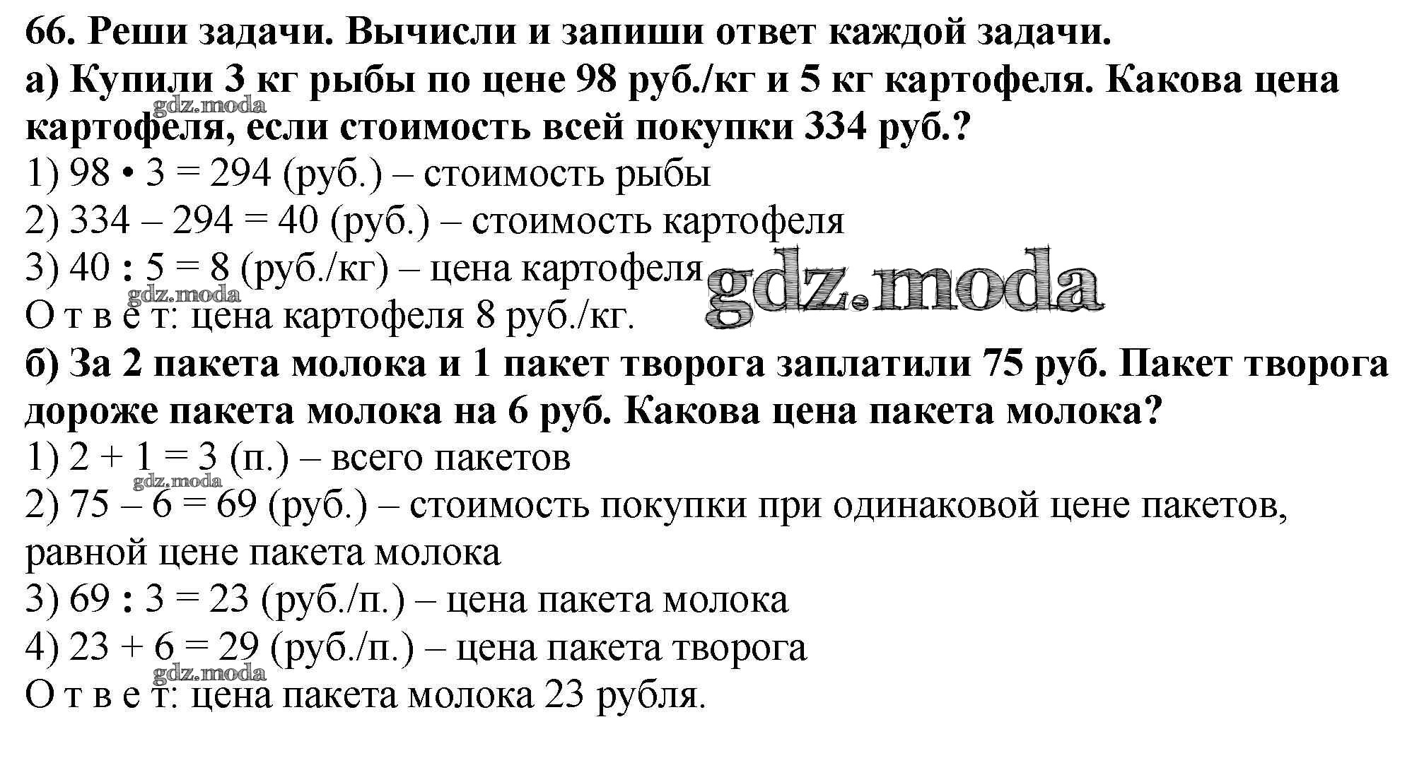 ОТВЕТ на задание № 66 Тетрадь для самостоятельной работы по Математике 4 класс Захарова