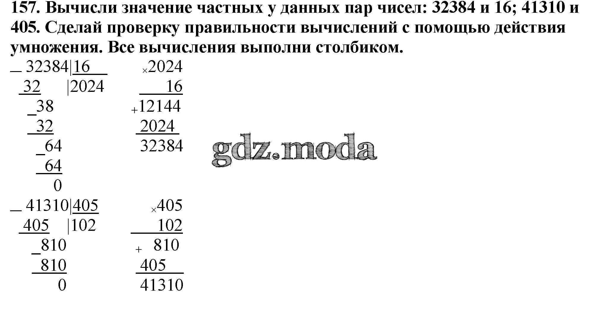 ОТВЕТ на задание № 157 Тетрадь для самостоятельной работы по Математике 4 класс Захарова