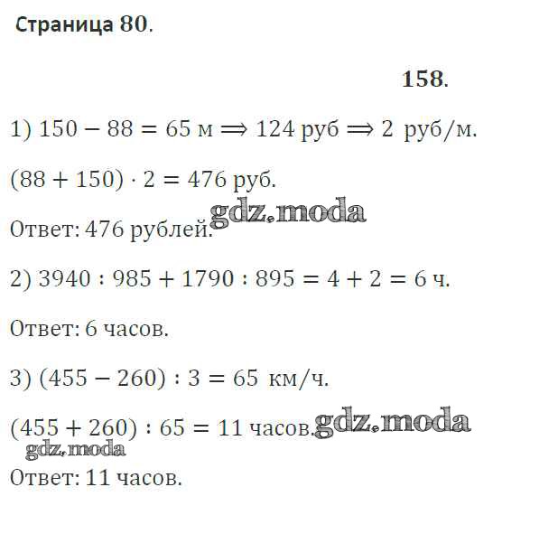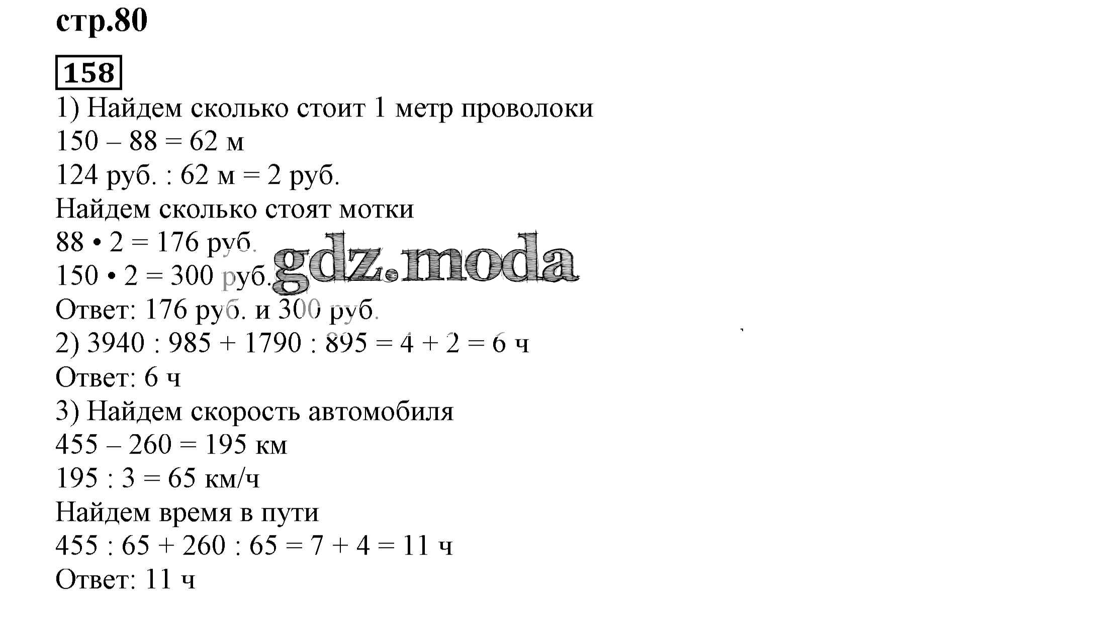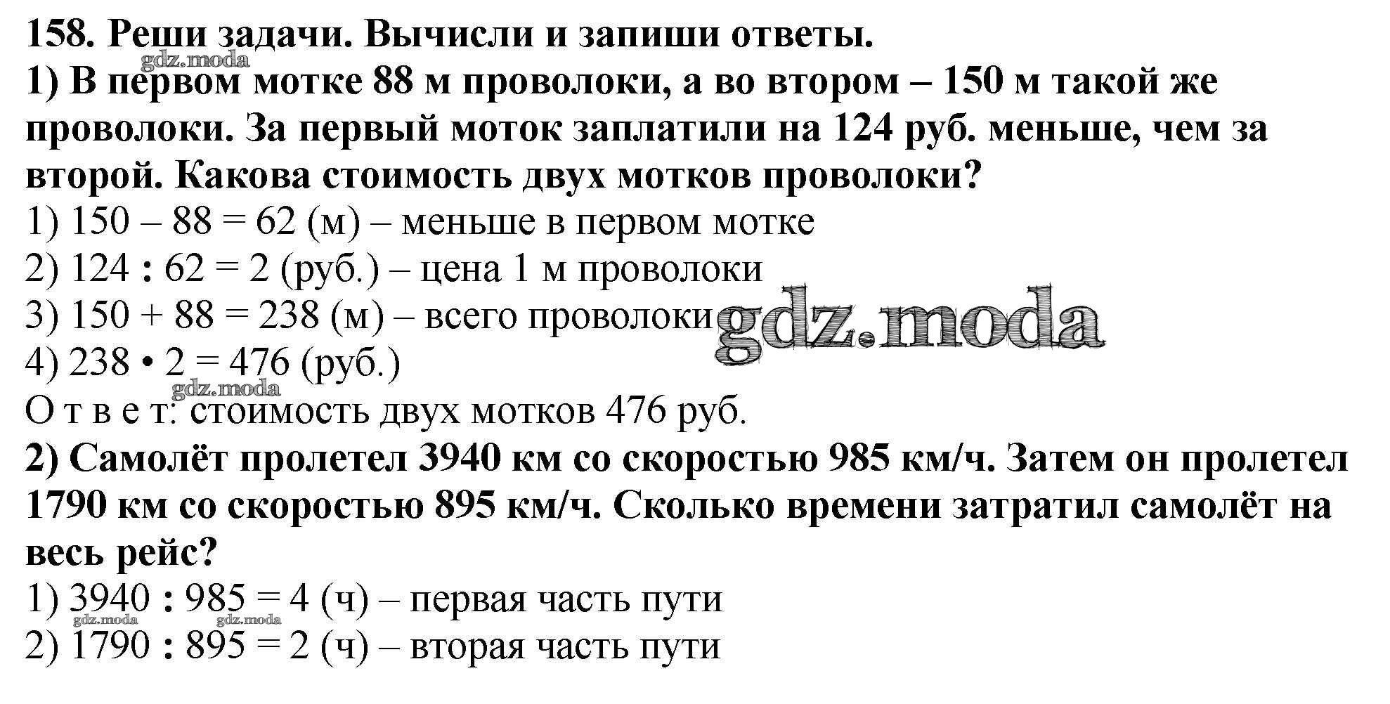 ОТВЕТ на задание № 158 Тетрадь для самостоятельной работы по Математике 4 класс Захарова