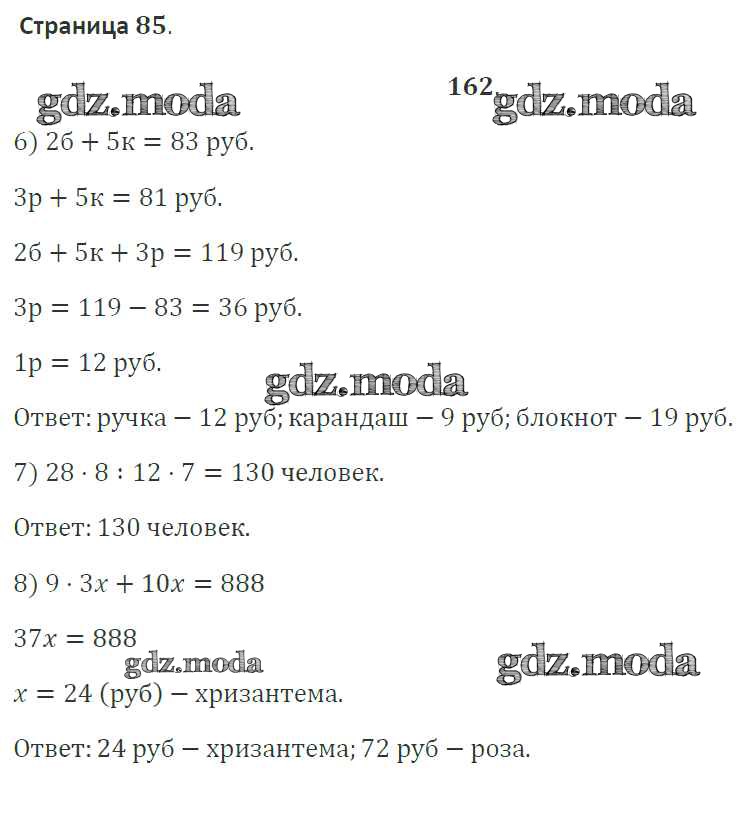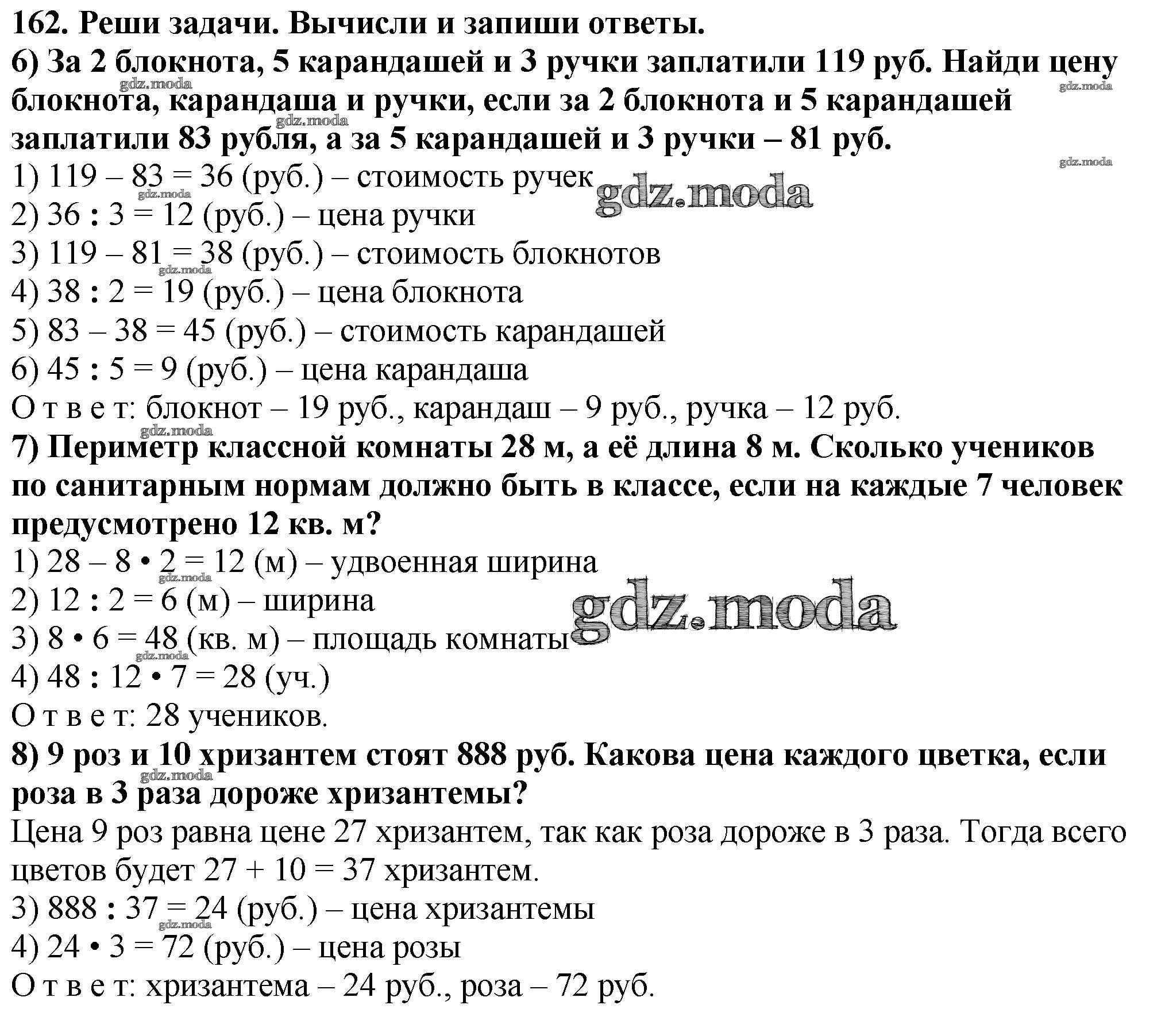 ОТВЕТ на задание № 162 Тетрадь для самостоятельной работы по Математике 4 класс Захарова