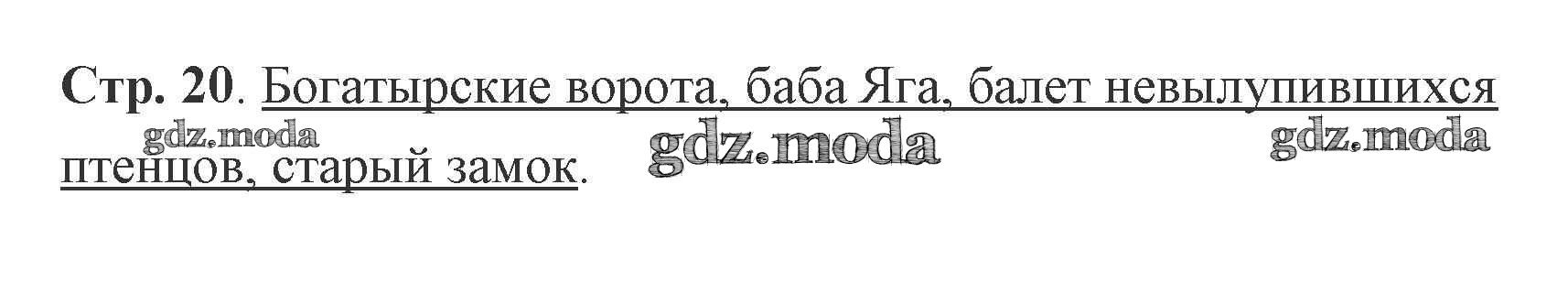 ГДЗ решение к заданию № 20 Музыка 4 класс рабочая тетрадь Критская Просвещение 2018 ФГОС бесплатно на гдз.мода!