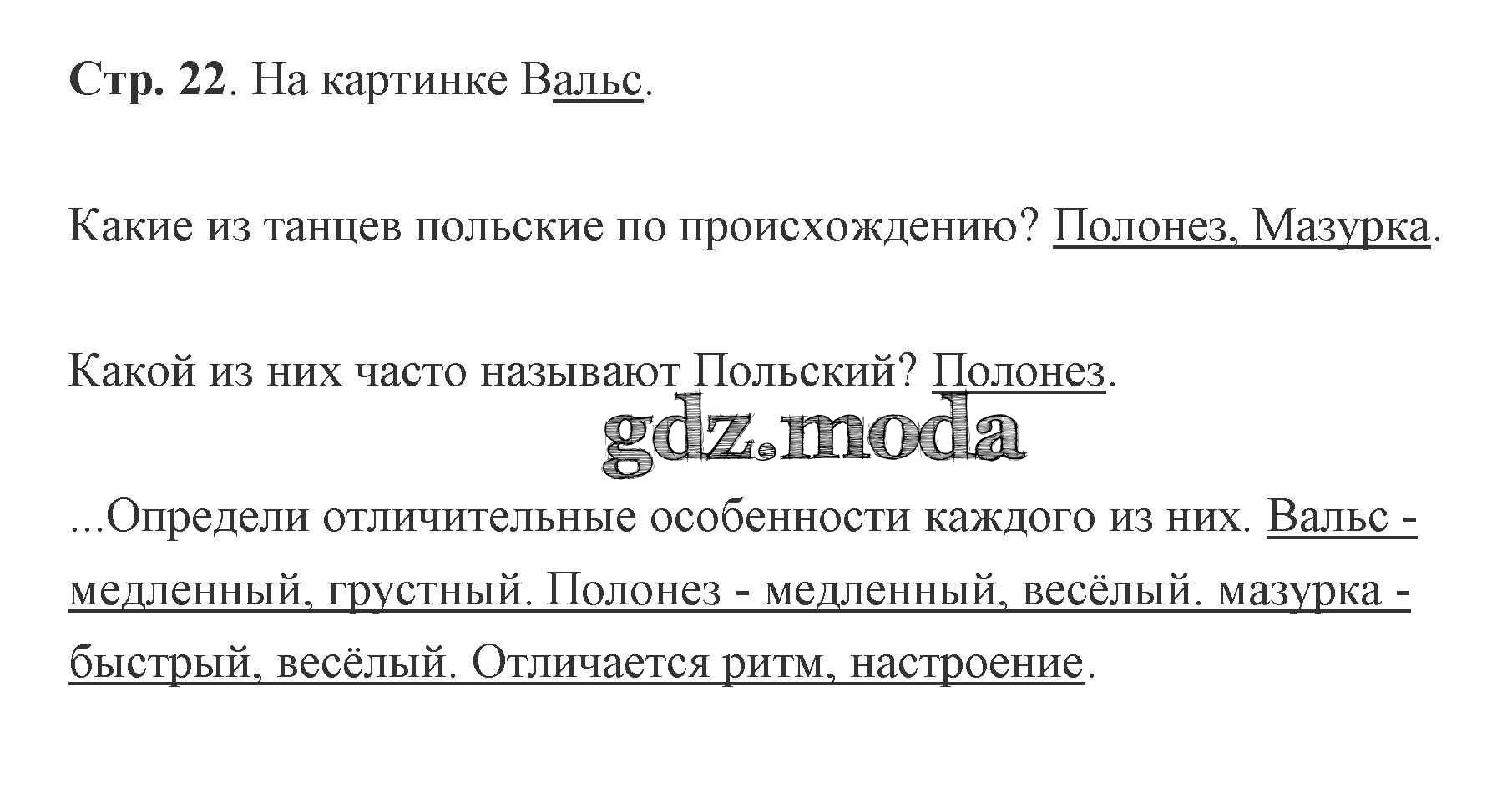 ГДЗ решение к заданию № 22 Музыка 4 класс рабочая тетрадь Критская Просвещение 2018 ФГОС бесплатно на гдз.мода!