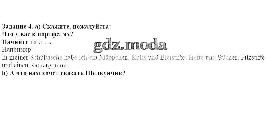 ГДЗ решение к заданию № 4 Немецкий язык 4 класс Бим И.Л. Просвещение 2014 ФГОС бесплатно на гдз.мода!