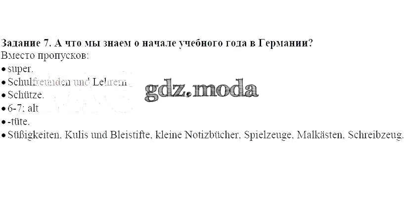 ГДЗ решение к заданию № 7 Немецкий язык 4 класс Бим И.Л. Просвещение 2014 ФГОС бесплатно на гдз.мода!