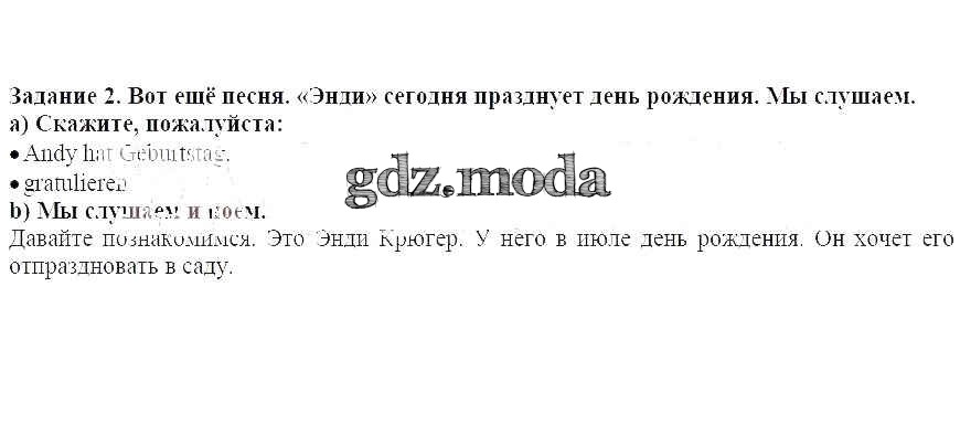 ГДЗ решение к заданию № 2 Немецкий язык 4 класс Бим И.Л. Просвещение 2014 ФГОС бесплатно на гдз.мода!