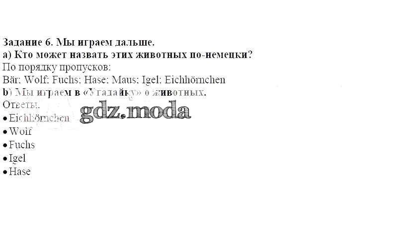 ГДЗ решение к заданию № 6 Немецкий язык 4 класс Бим И.Л. Просвещение 2014 ФГОС бесплатно на гдз.мода!