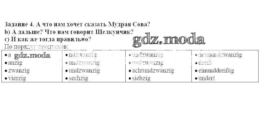 ГДЗ решение к заданию № 4 Немецкий язык 4 класс Бим И.Л. Просвещение 2014 ФГОС бесплатно на гдз.мода!