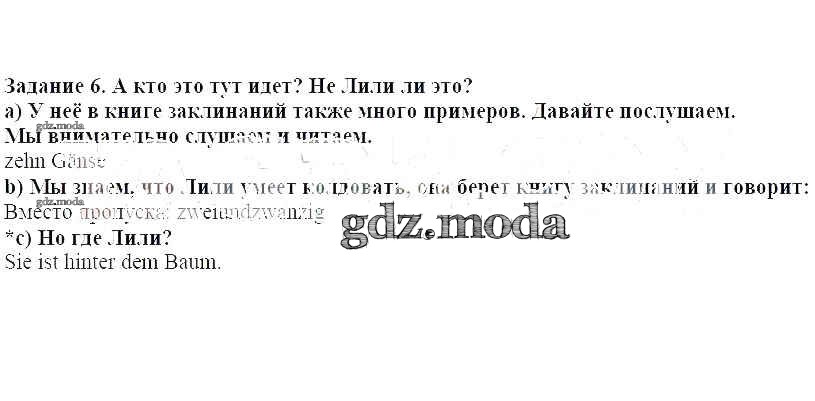 ГДЗ решение к заданию № 6 Немецкий язык 4 класс Бим И.Л. Просвещение 2014 ФГОС бесплатно на гдз.мода!