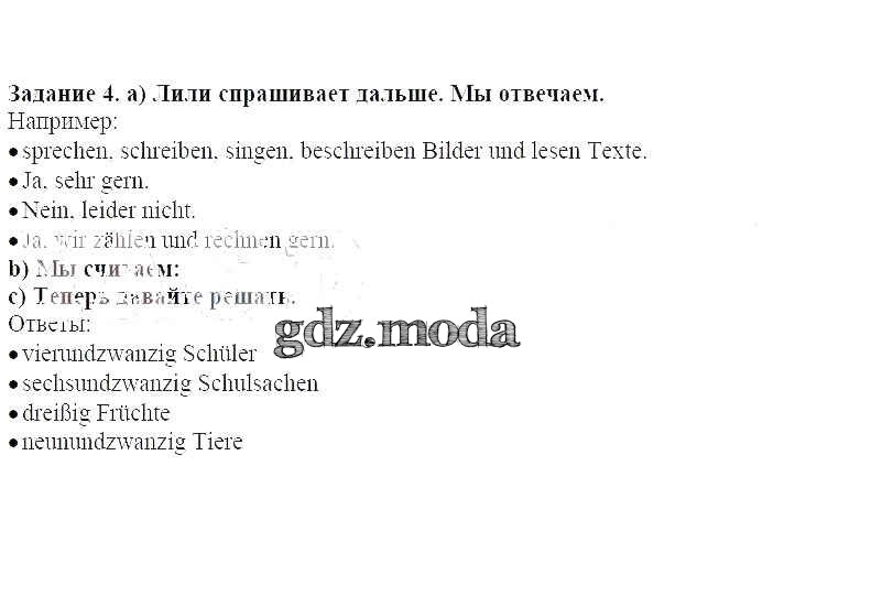 ГДЗ решение к заданию № 4 Немецкий язык 4 класс Бим И.Л. Просвещение 2014 ФГОС бесплатно на гдз.мода!