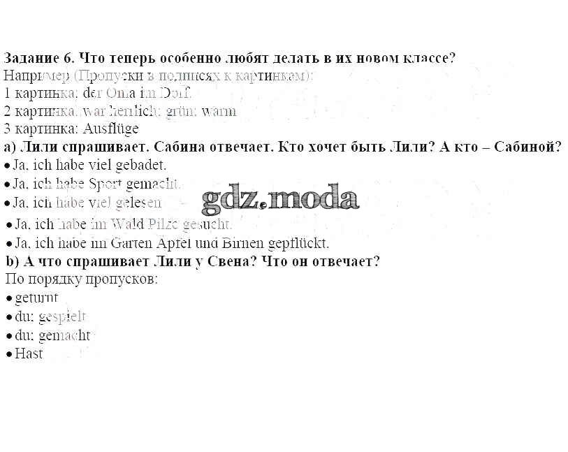 ГДЗ решение к заданию № 6 Немецкий язык 4 класс Бим И.Л. Просвещение 2014 ФГОС бесплатно на гдз.мода!