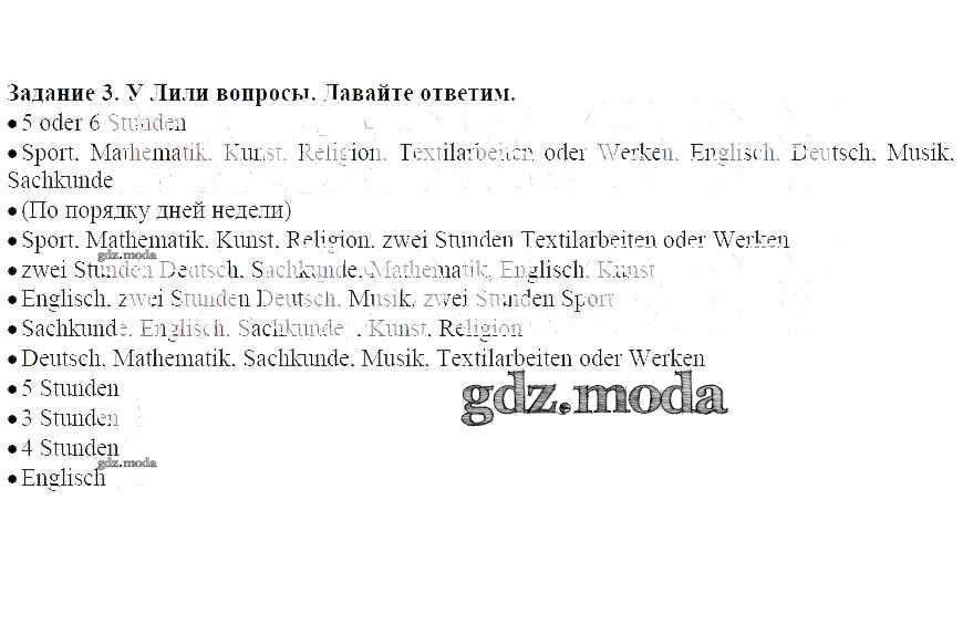 ГДЗ решение к заданию № 3 Немецкий язык 4 класс Бим И.Л. Просвещение 2014 ФГОС бесплатно на гдз.мода!