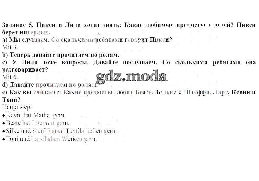 ГДЗ решение к заданию № 5 Немецкий язык 4 класс Бим И.Л. Просвещение 2014 ФГОС бесплатно на гдз.мода!