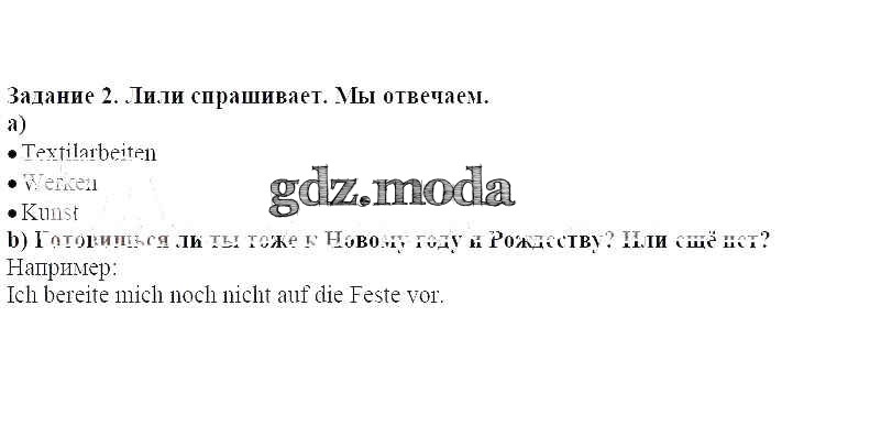 ГДЗ решение к заданию № 2 Немецкий язык 4 класс Бим И.Л. Просвещение 2014 ФГОС бесплатно на гдз.мода!