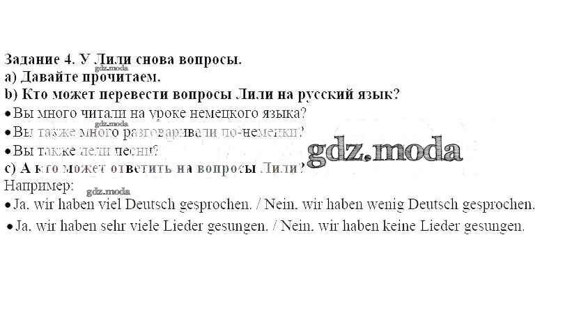 ГДЗ решение к заданию № 4 Немецкий язык 4 класс Бим И.Л. Просвещение 2014 ФГОС бесплатно на гдз.мода!