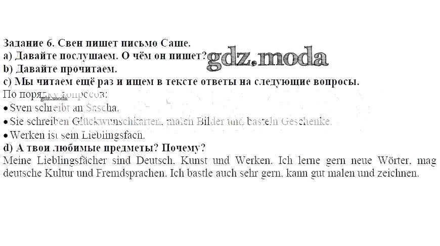 ГДЗ решение к заданию № 6 Немецкий язык 4 класс Бим И.Л. Просвещение 2014 ФГОС бесплатно на гдз.мода!