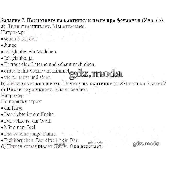 ГДЗ решение к заданию № 7 Немецкий язык 4 класс Бим И.Л. Просвещение 2014 ФГОС бесплатно на гдз.мода!