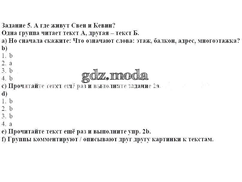 ГДЗ решение к заданию № 5 Немецкий язык 4 класс Бим И.Л. Просвещение 2014 ФГОС бесплатно на гдз.мода!