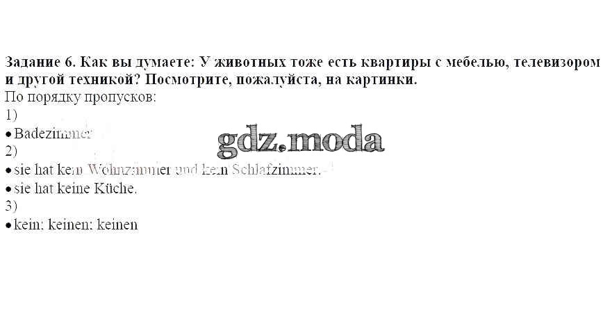 ГДЗ решение к заданию № 6 Немецкий язык 4 класс Бим И.Л. Просвещение 2014 ФГОС бесплатно на гдз.мода!