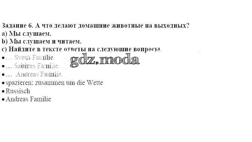 ГДЗ решение к заданию № 6 Немецкий язык 4 класс Бим И.Л. Просвещение 2014 ФГОС бесплатно на гдз.мода!