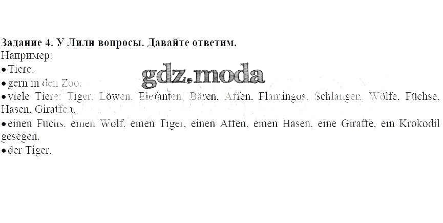 ГДЗ решение к заданию № 4 Немецкий язык 4 класс Бим И.Л. Просвещение 2014 ФГОС бесплатно на гдз.мода!