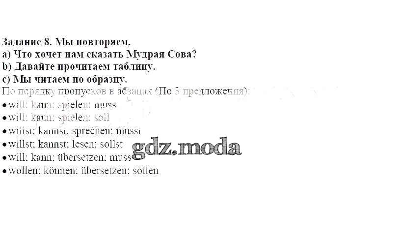 ГДЗ решение к заданию № 8 Немецкий язык 4 класс Бим И.Л. Просвещение 2014 ФГОС бесплатно на гдз.мода!