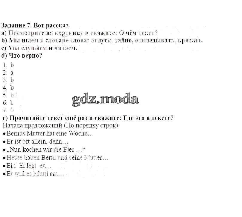 ГДЗ решение к заданию № 7 Немецкий язык 4 класс Бим И.Л. Просвещение 2014 ФГОС бесплатно на гдз.мода!