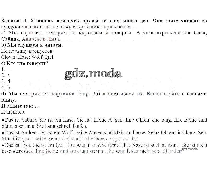 ГДЗ решение к заданию № 3 Немецкий язык 4 класс Бим И.Л. Просвещение 2014 ФГОС бесплатно на гдз.мода!