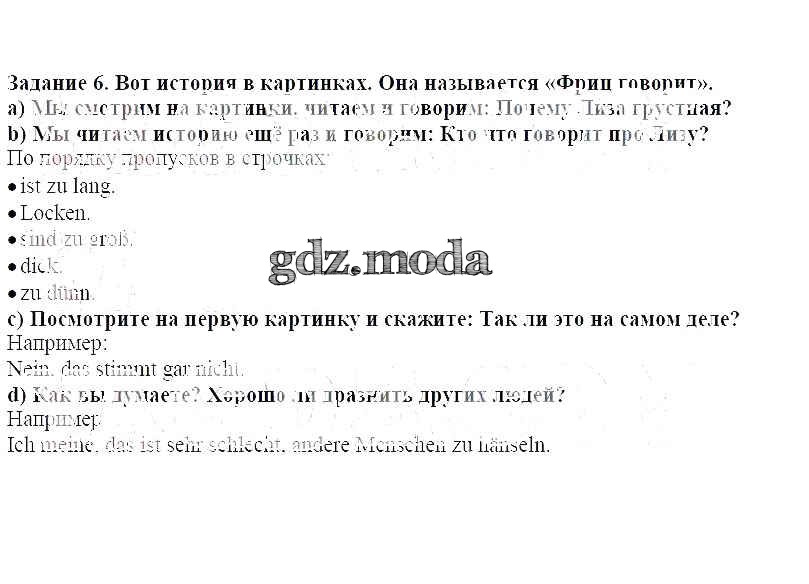 ГДЗ решение к заданию № 6 Немецкий язык 4 класс Бим И.Л. Просвещение 2014 ФГОС бесплатно на гдз.мода!