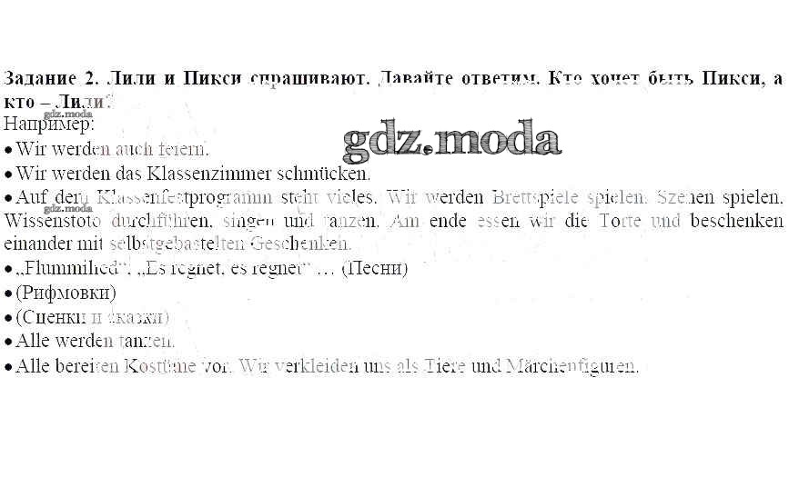 ГДЗ решение к заданию № 2 Немецкий язык 4 класс Бим И.Л. Просвещение 2014 ФГОС бесплатно на гдз.мода!