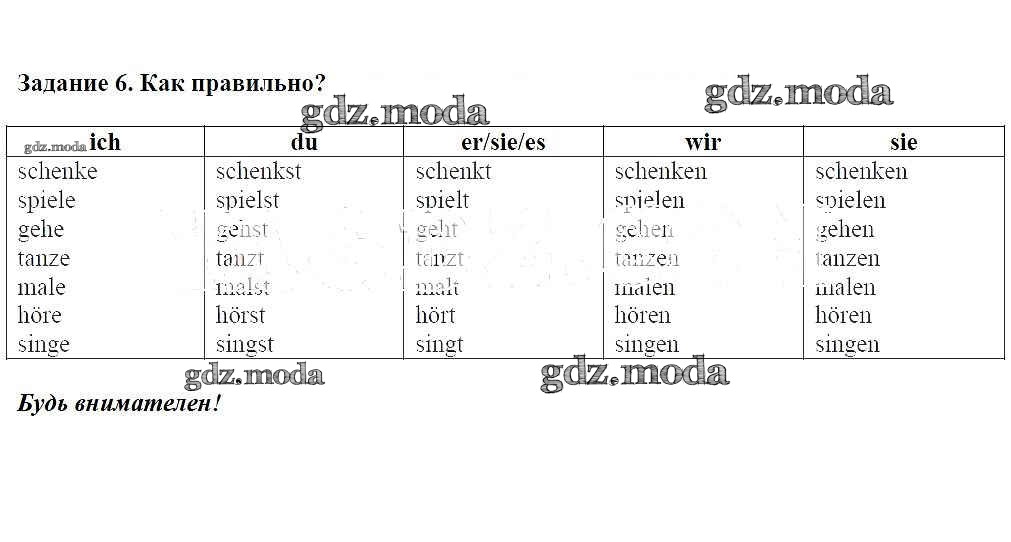 ГДЗ решение к заданию № 6 Немецкий язык 4 класс Гальскова Н.Д. Дрофа 2014 ФГОС бесплатно на гдз.мода!