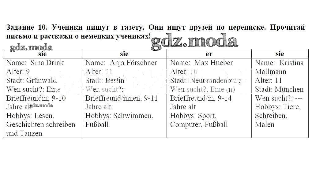 ГДЗ решение к заданию № 10 Немецкий язык 4 класс Гальскова Н.Д. Дрофа 2014 ФГОС бесплатно на гдз.мода!