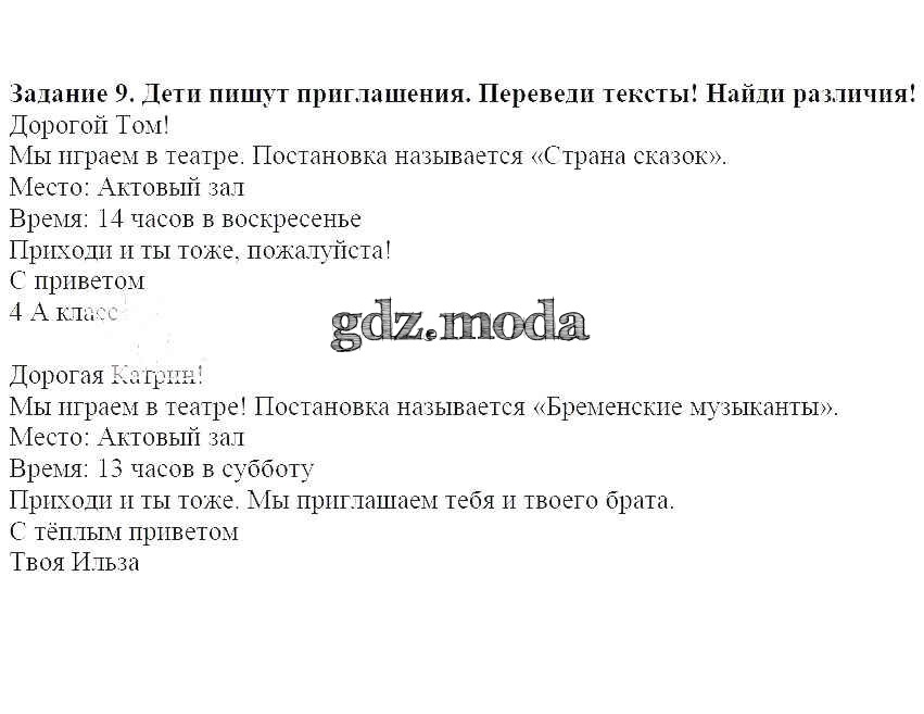 ГДЗ решение к заданию № 9 Немецкий язык 4 класс Гальскова Н.Д. Дрофа 2014 ФГОС бесплатно на гдз.мода!