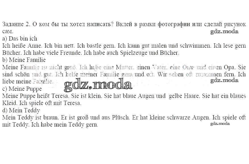 ГДЗ решение к заданию № 2 Немецкий язык 4 класс рабочая тетрадь Бим И.Л. Просвещение 2020 ФГОС бесплатно на гдз.мода!