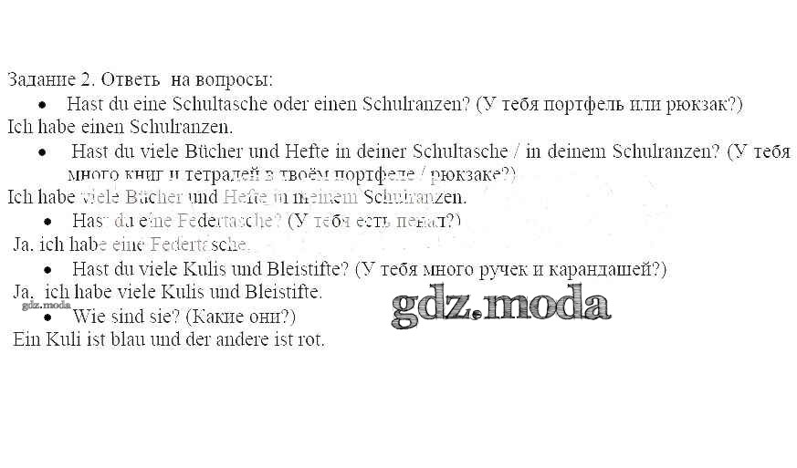 ГДЗ решение к заданию № 2 Немецкий язык 4 класс рабочая тетрадь Бим И.Л. Просвещение 2020 ФГОС бесплатно на гдз.мода!