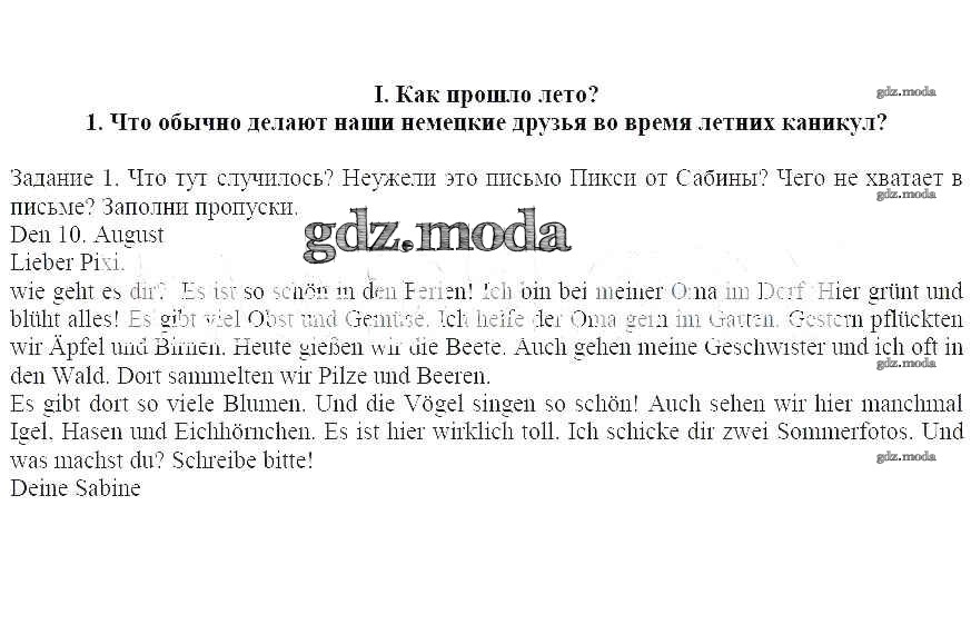 ГДЗ решение к заданию № 1 Немецкий язык 4 класс рабочая тетрадь Бим И.Л. Просвещение 2020 ФГОС бесплатно на гдз.мода!