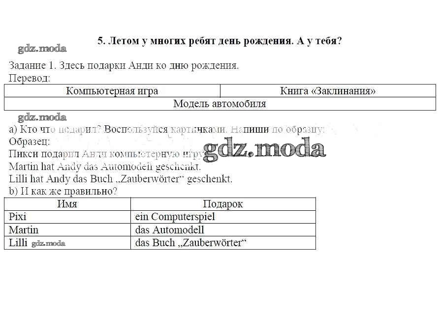 ОТВЕТ на задание № 1 Рабочая тетрадь по Немецкому языку 4 класс Бим