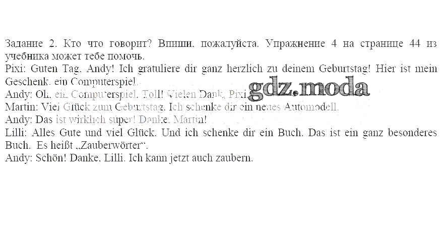 ОТВЕТ на задание № 2 Рабочая тетрадь по Немецкому языку 4 класс Бим