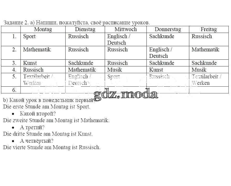 ОТВЕТ на задание № 2 Рабочая тетрадь по Немецкому языку 4 класс Бим