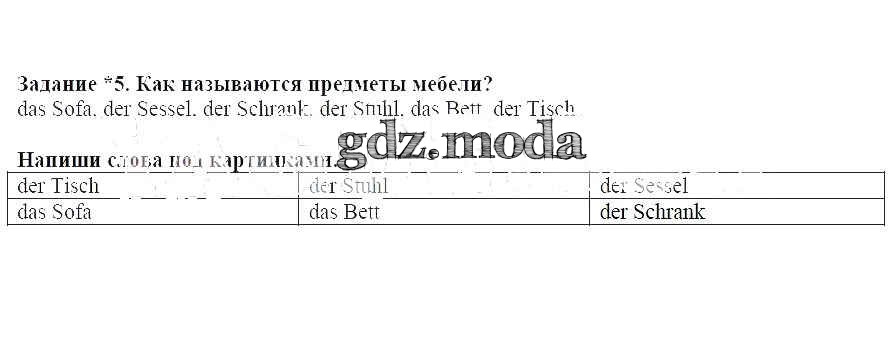 ГДЗ решение к заданию № 5 Немецкий язык 4 класс рабочая тетрадь Бим И.Л. Просвещение 2020 ФГОС бесплатно на гдз.мода!
