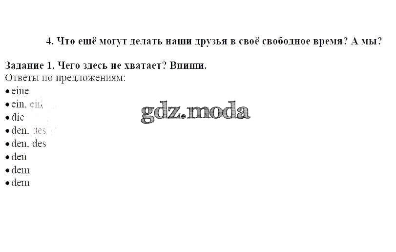 ОТВЕТ на задание № 1 Рабочая тетрадь по Немецкому языку 4 класс Бим