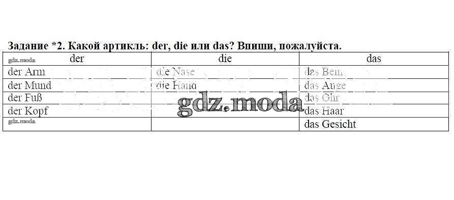 ГДЗ решение к заданию № 2 Немецкий язык 4 класс рабочая тетрадь Бим И.Л. Просвещение 2020 ФГОС бесплатно на гдз.мода!