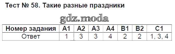ГДЗ решение к заданию № 58 Окружающий мир 4 класс КИМ Тихомирова Е.М. Экзамен 2014 ФГОС бесплатно на гдз.мода!