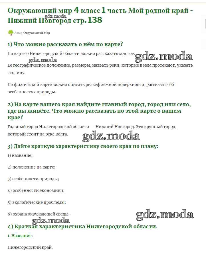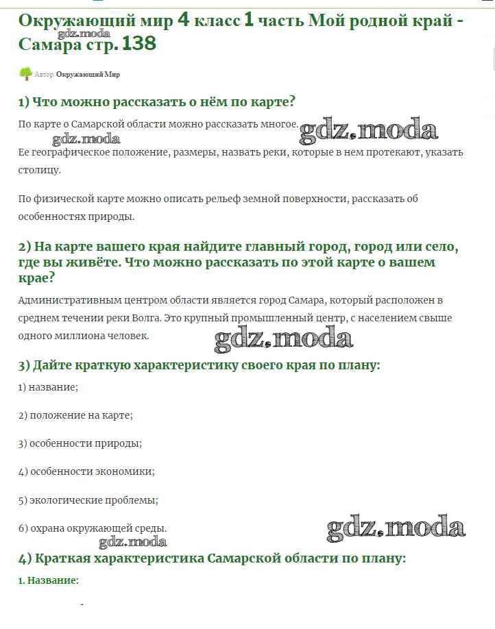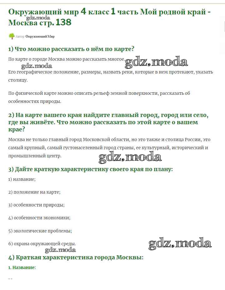 ОТВЕТ на задание № 138 Учебник по Окружающему миру 4 класс Плешаков Школа России