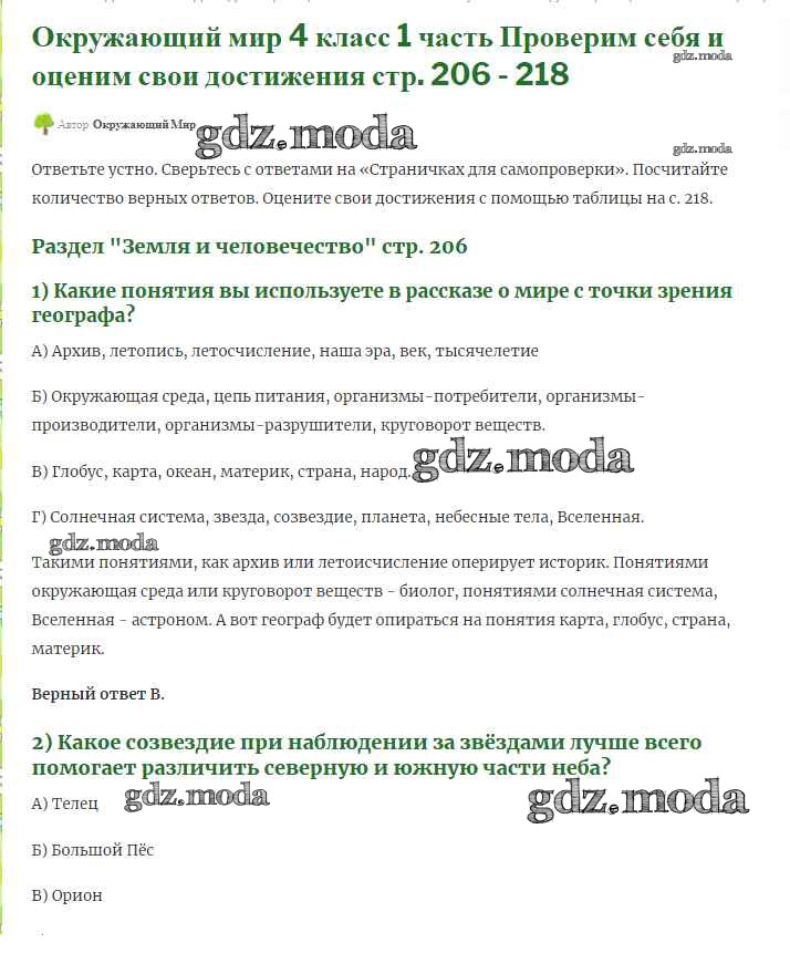 ГДЗ решение к заданию № 206 Окружающий мир 4 класс Плешаков (Школы России) Просвещение 2013 Часть 1, Часть 2 ФГОС бесплатно на гдз.мода!
