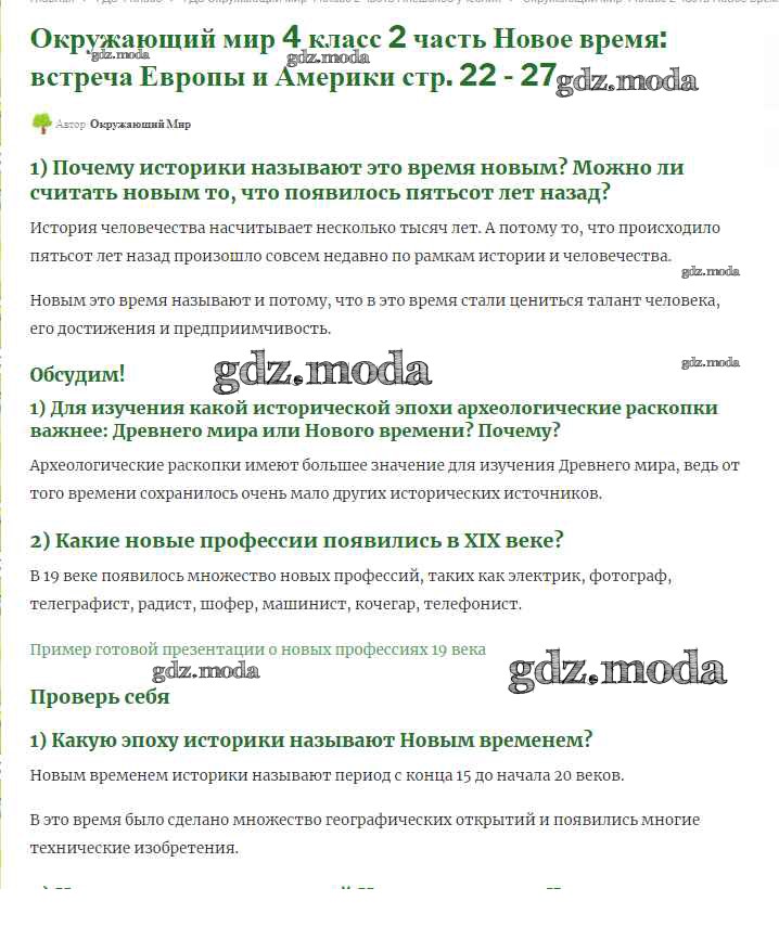 ОТВЕТ на задание № 22 Учебник по Окружающему миру 4 класс Плешаков Школа России