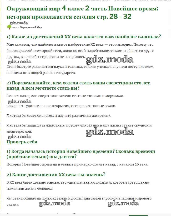 ОТВЕТ на задание № 28 Учебник по Окружающему миру 4 класс Плешаков Школа России